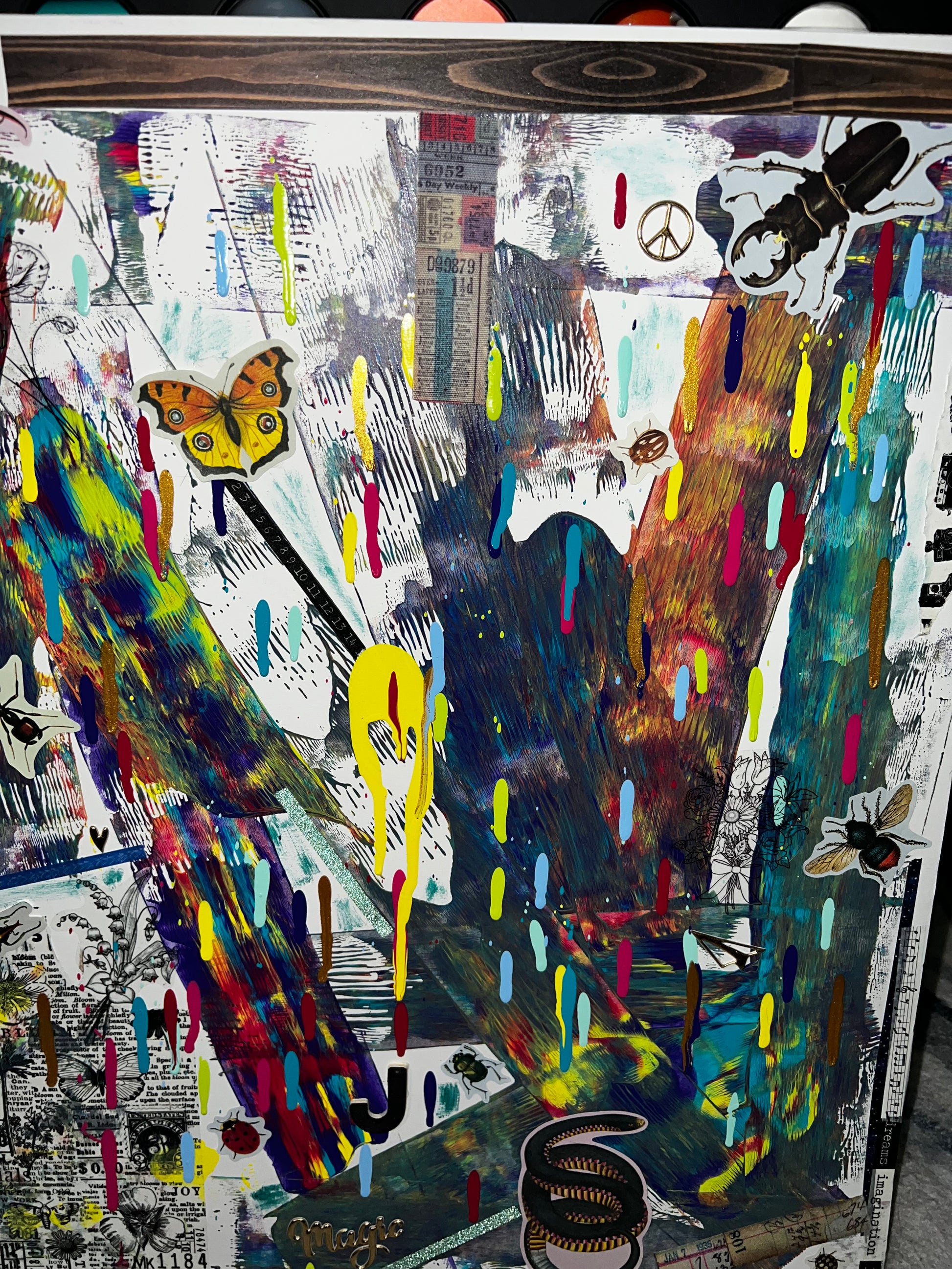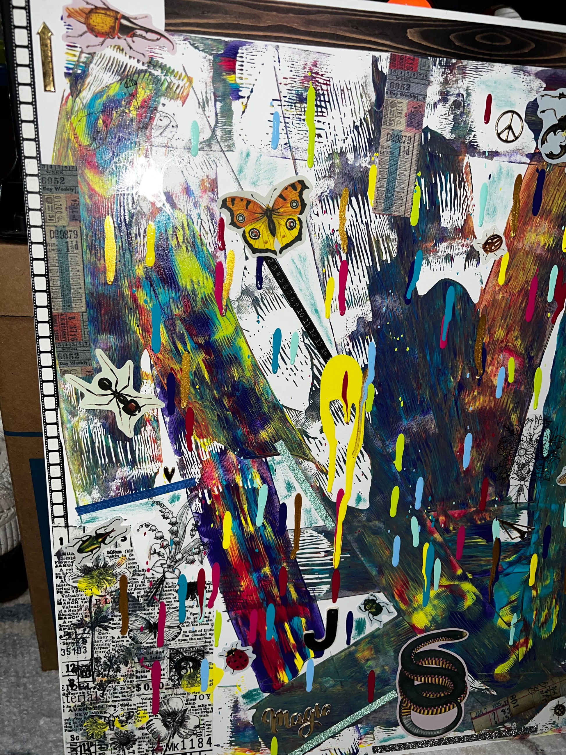 Abstract visions: bugs, reptiles, words, vintage newspaper paper, flowers, and more…