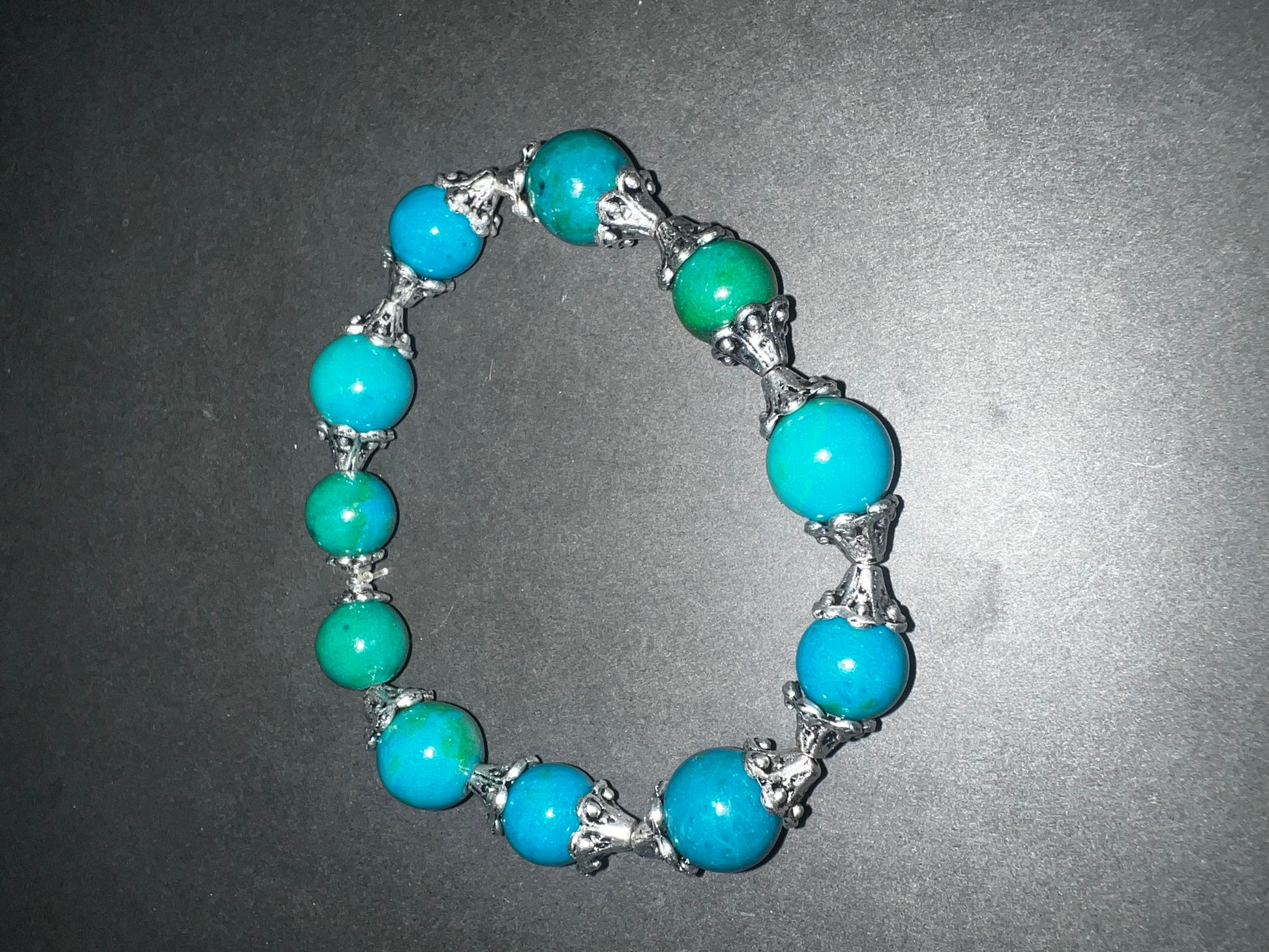 Chrysocolla beads and silver accents pieces.