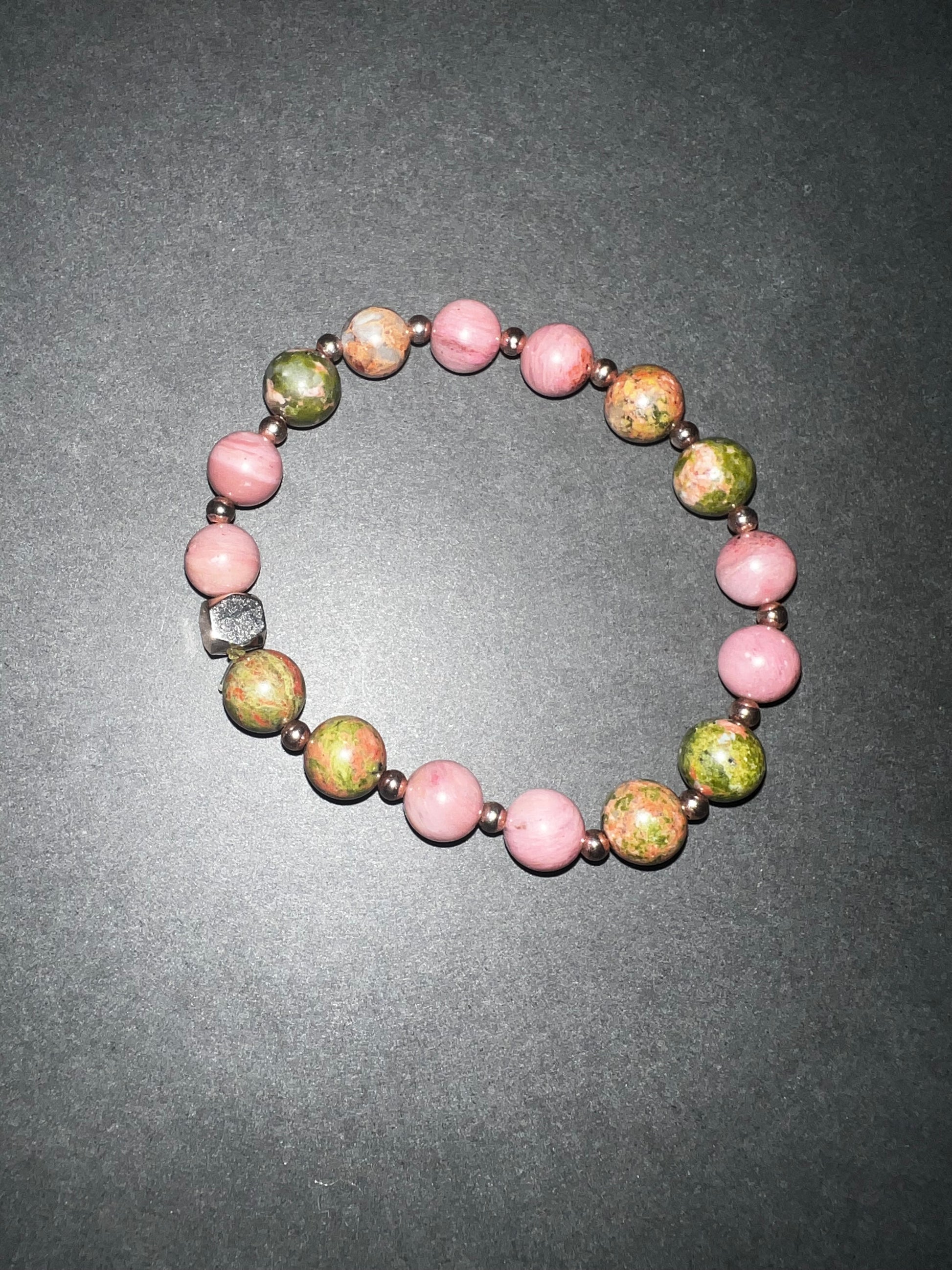 Jasper & Unikite beads with gold accents. Set of 4 bracelets and earrings to match!