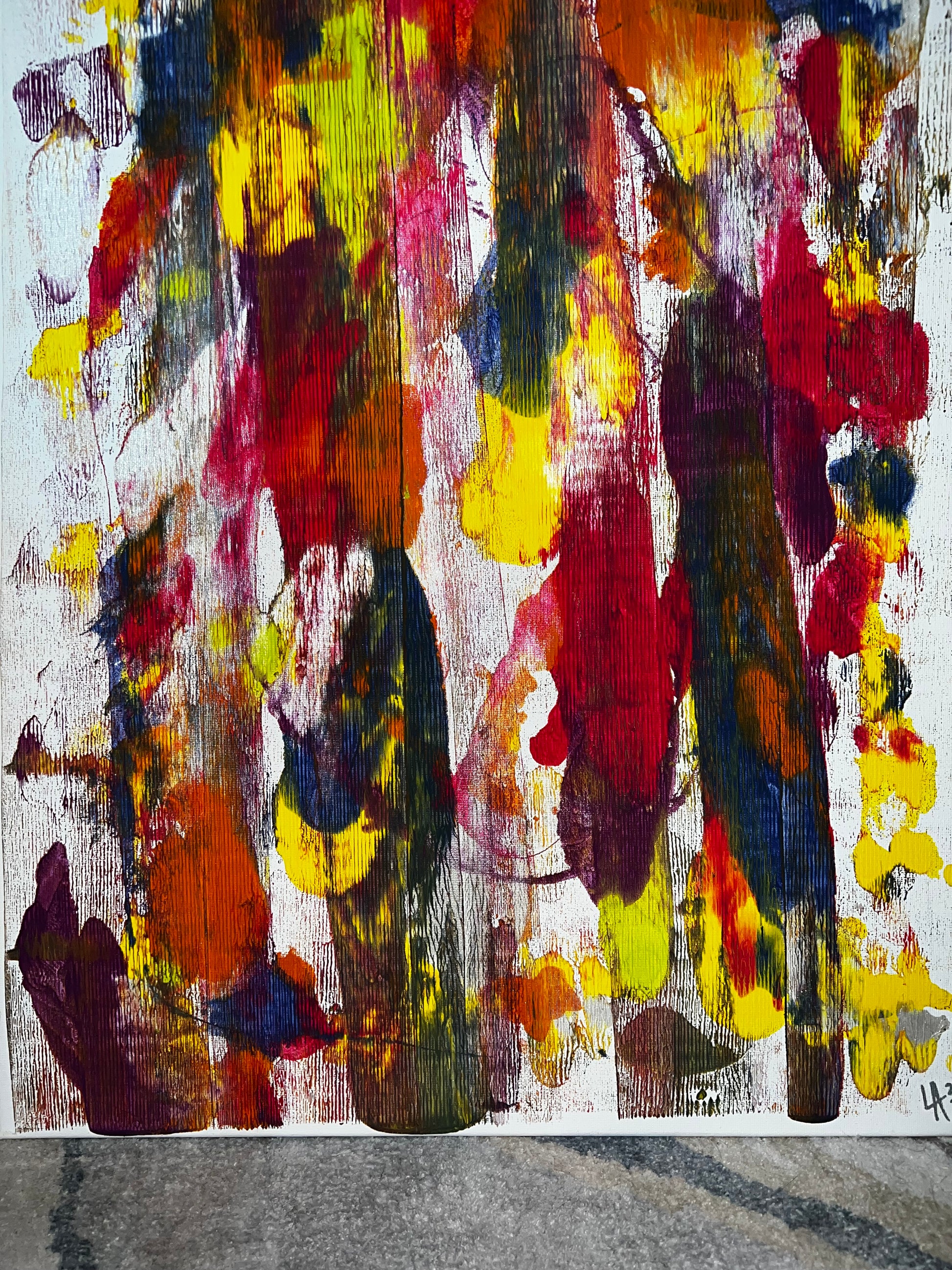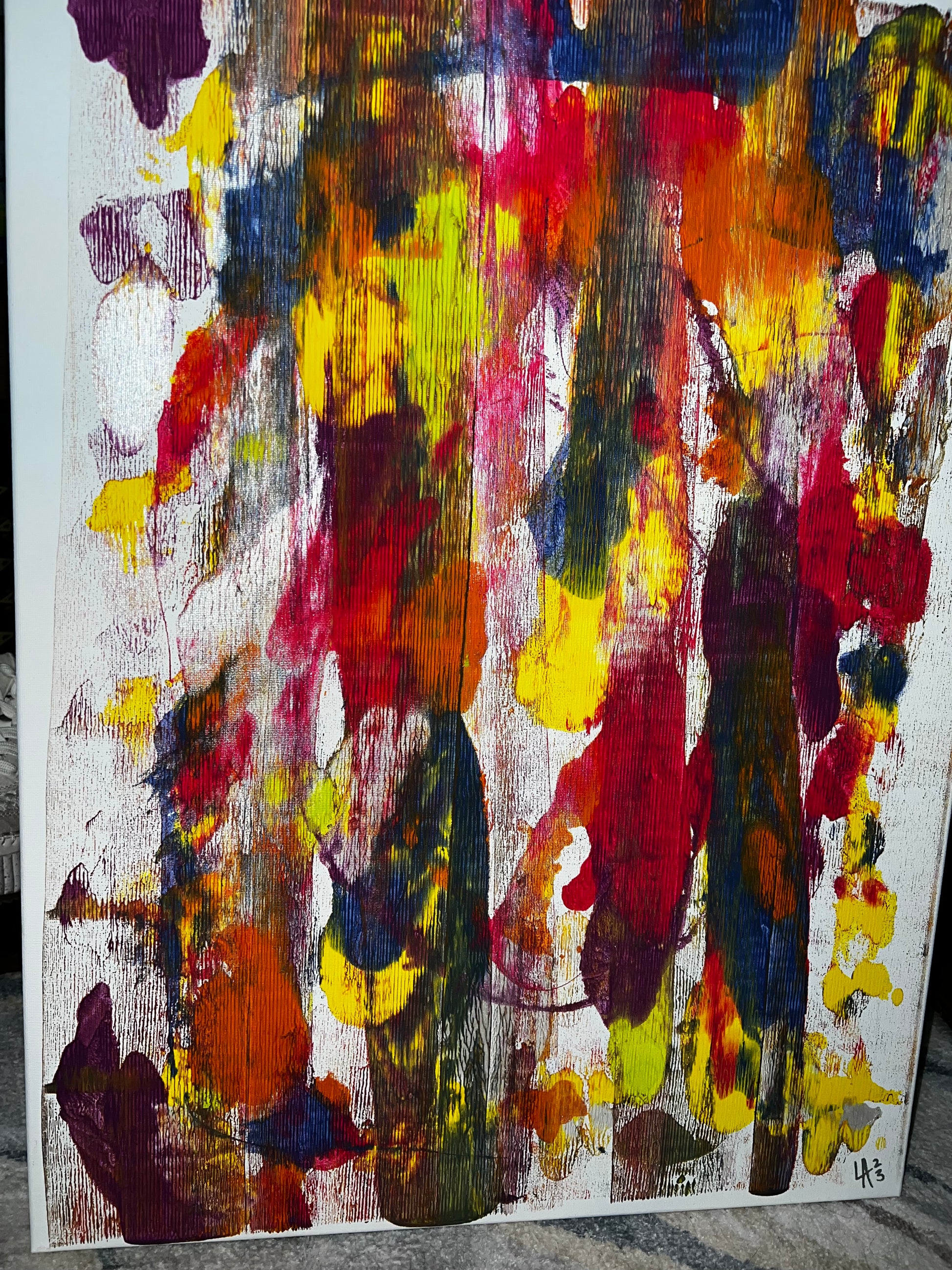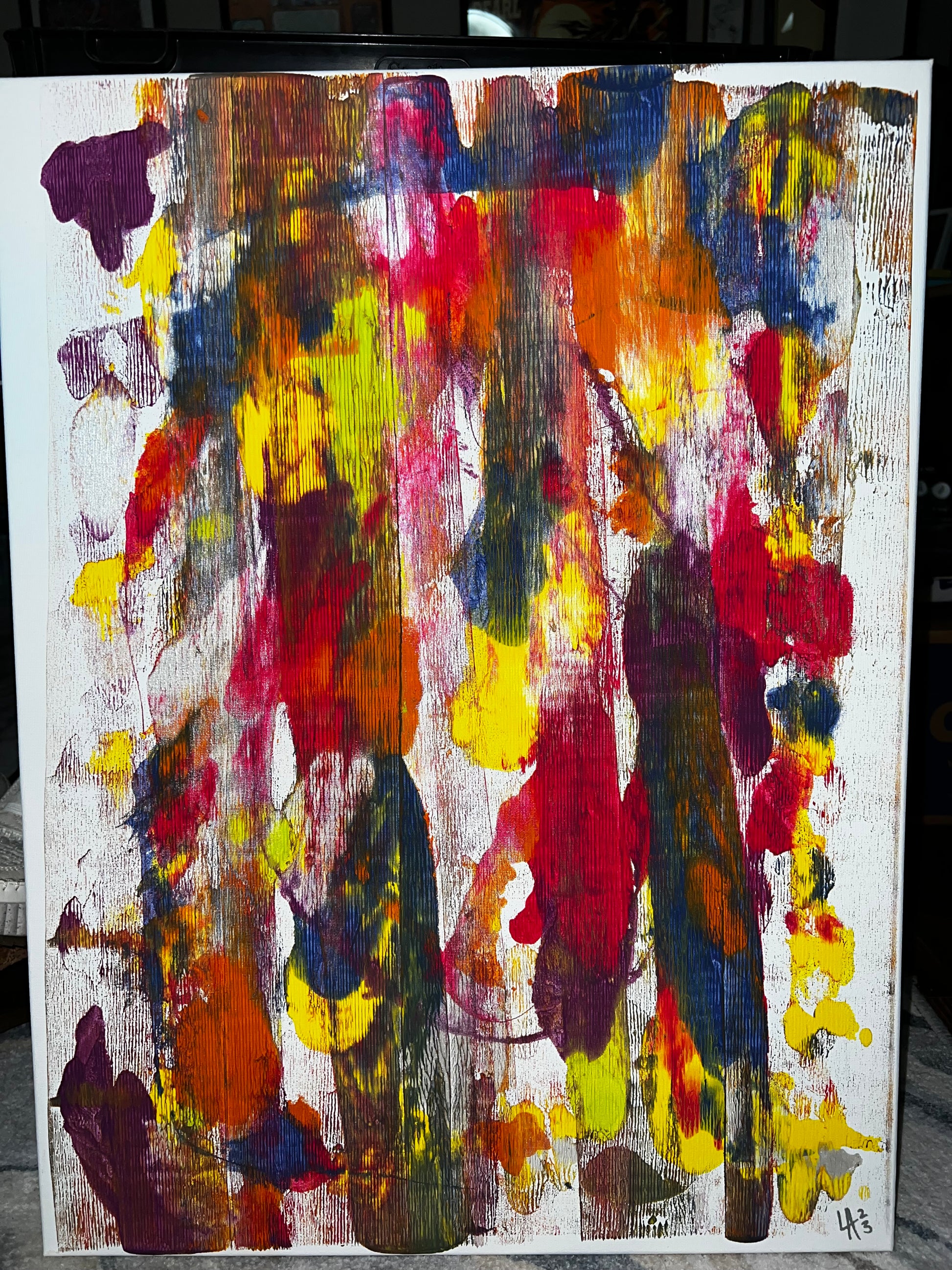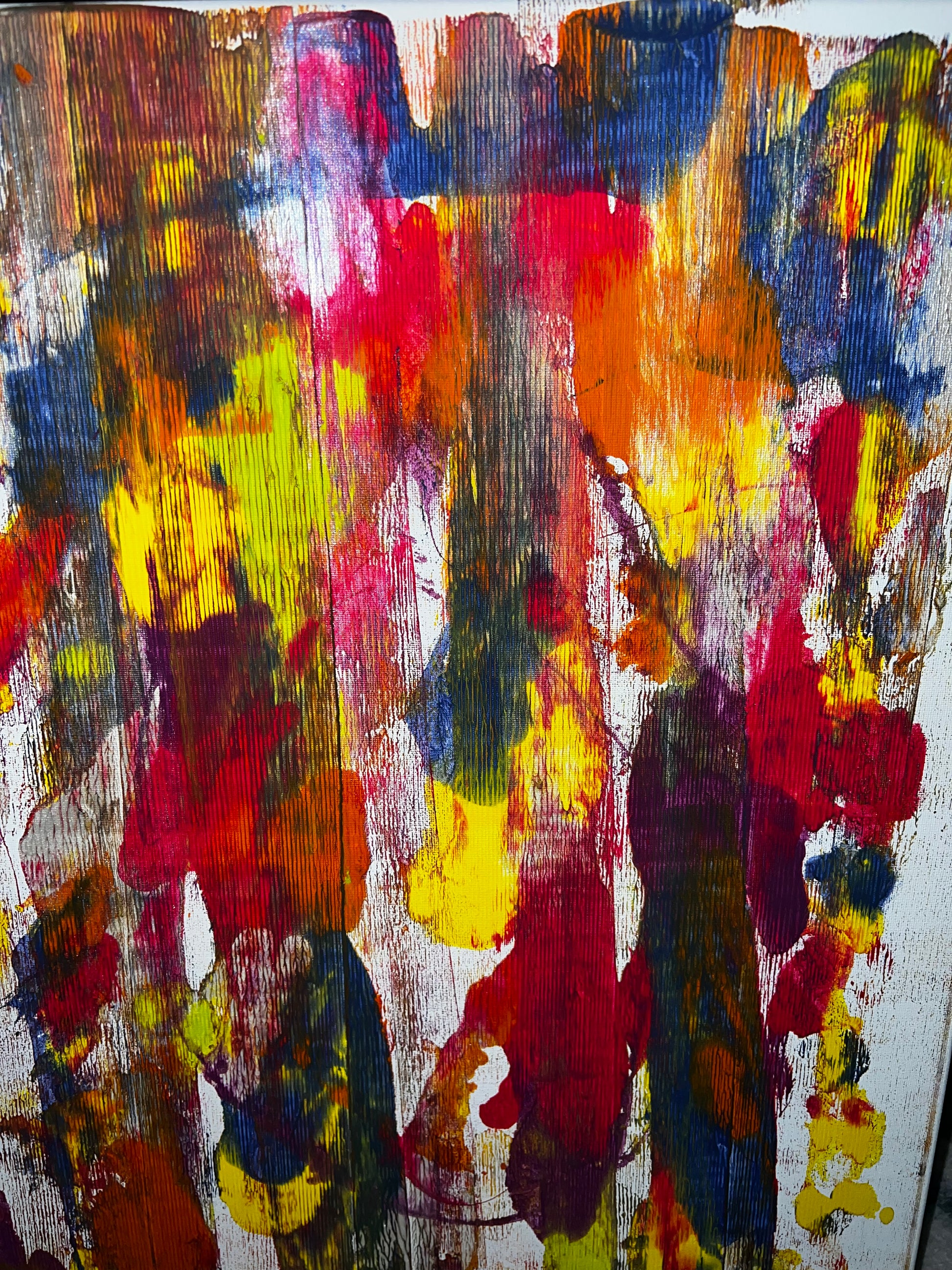 Primary and secondary colors rolled out with a brayer.