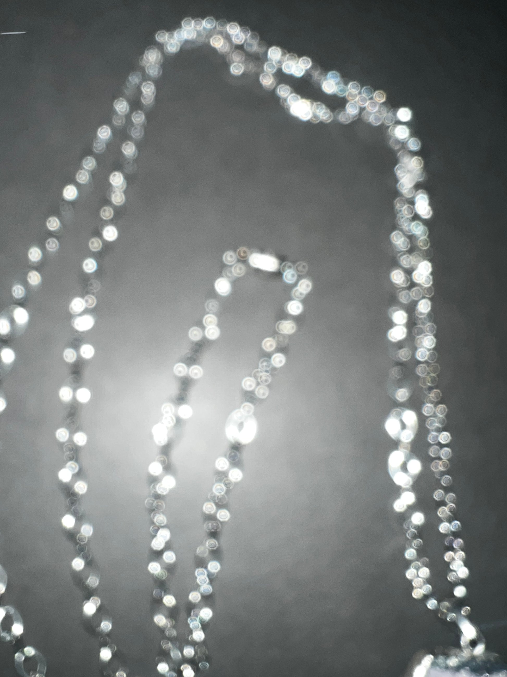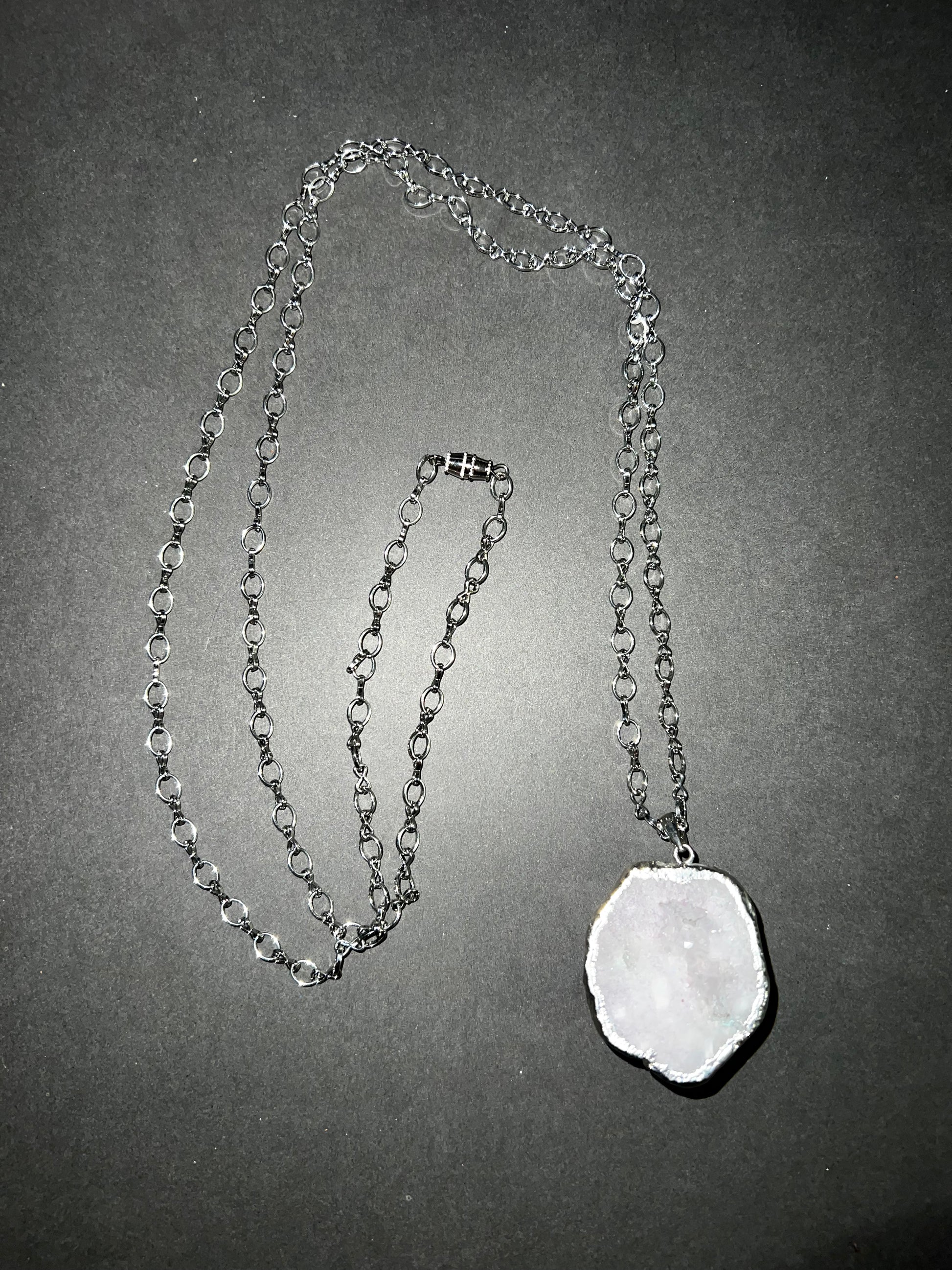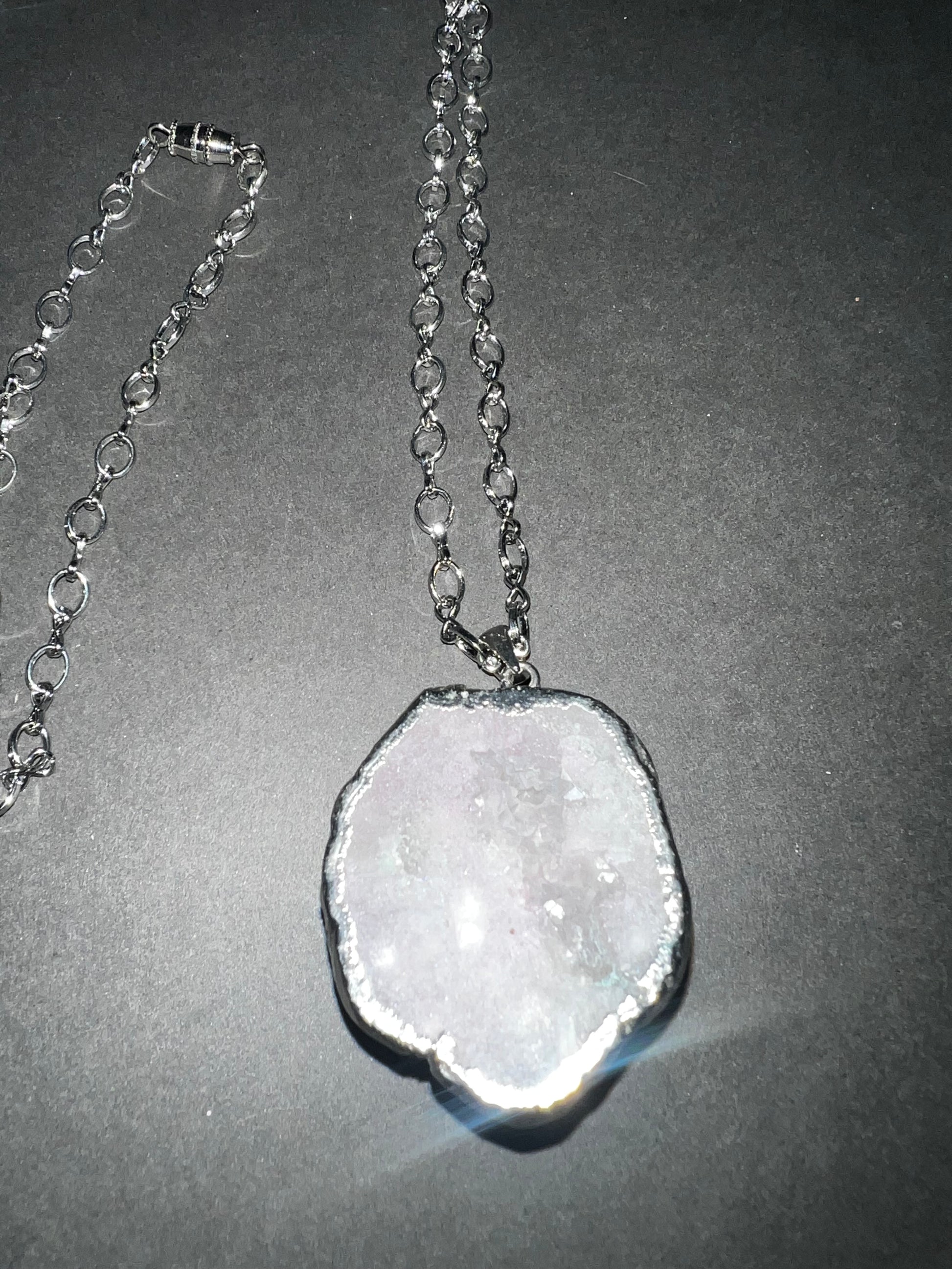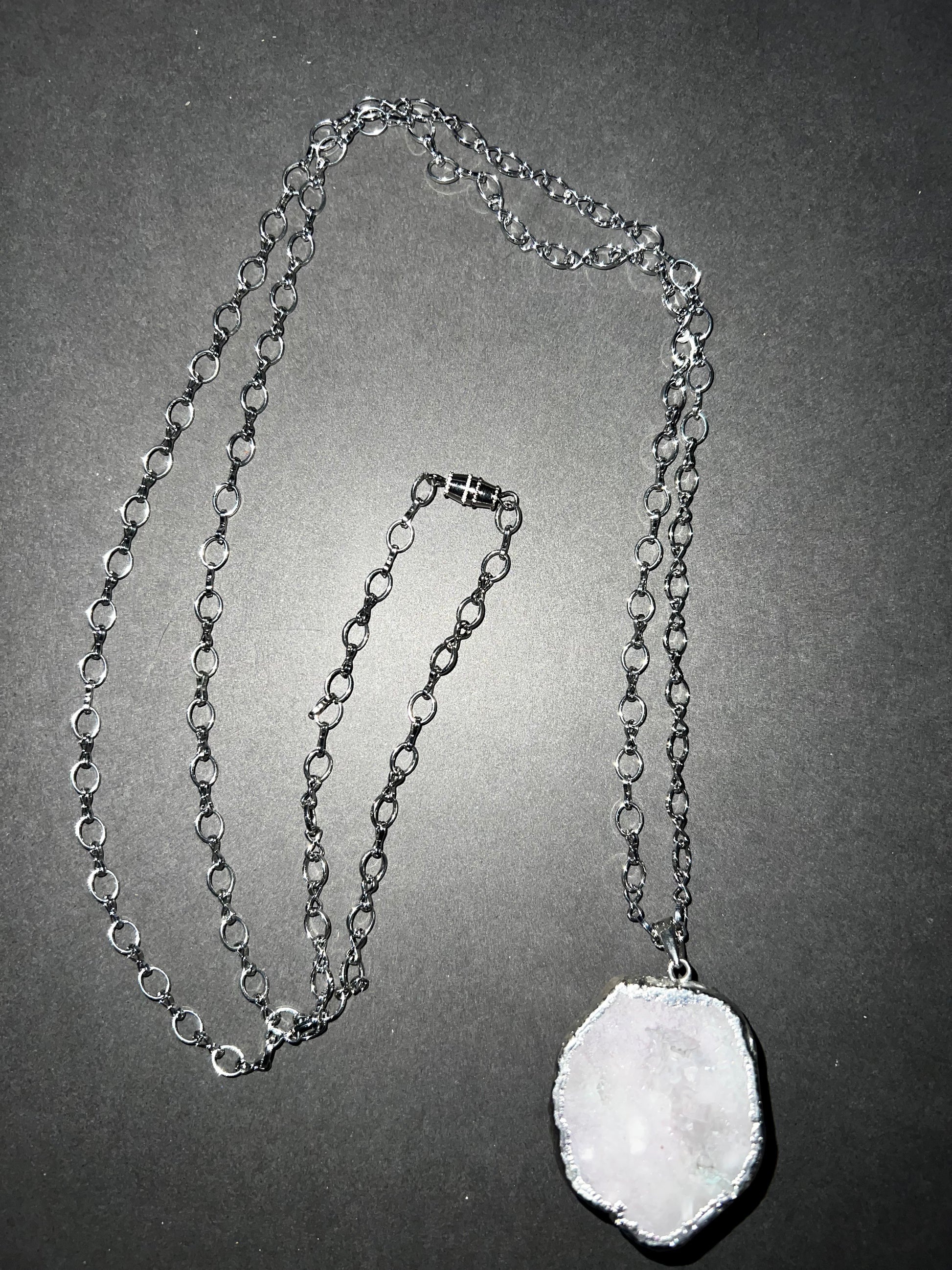Silver chain with rose quartz stone charm, with clasp. Approximately 18.5” long in length.